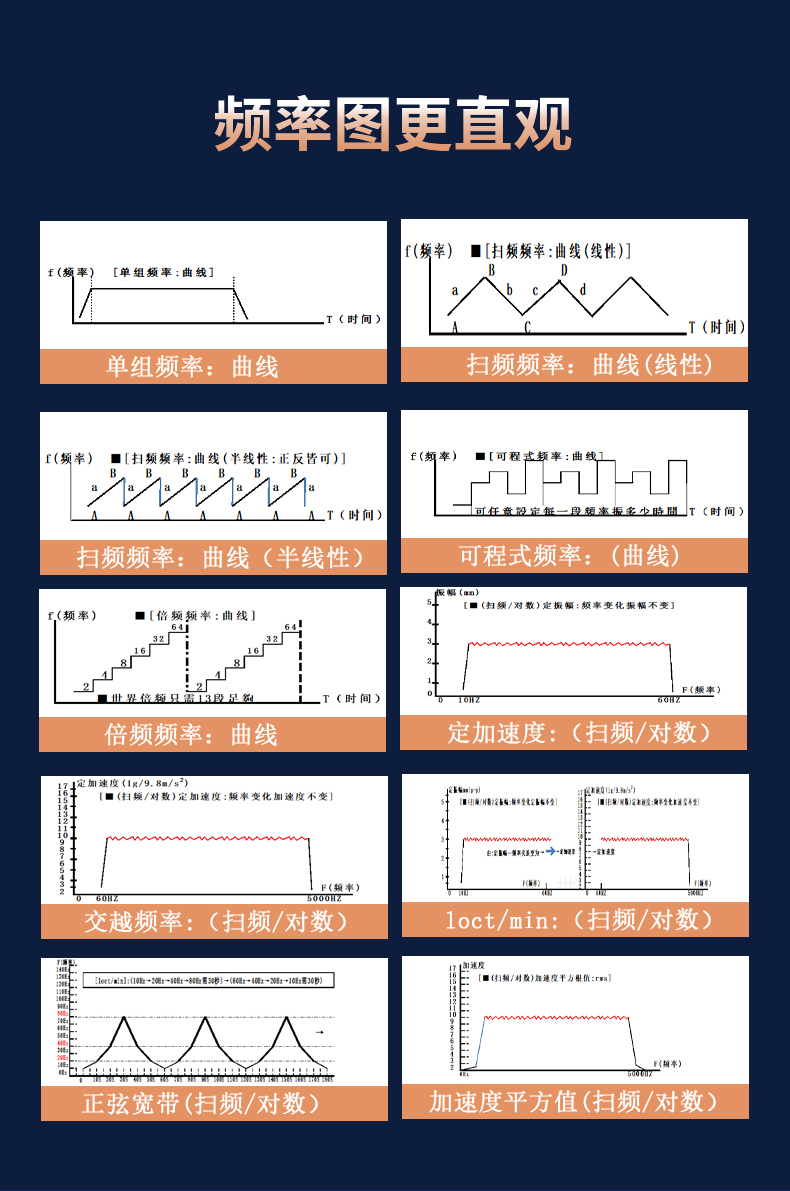 2、振動頻率:分為50HZ、0~400HZ、0~600HZ、0~3000HZ、0~5000HZ等